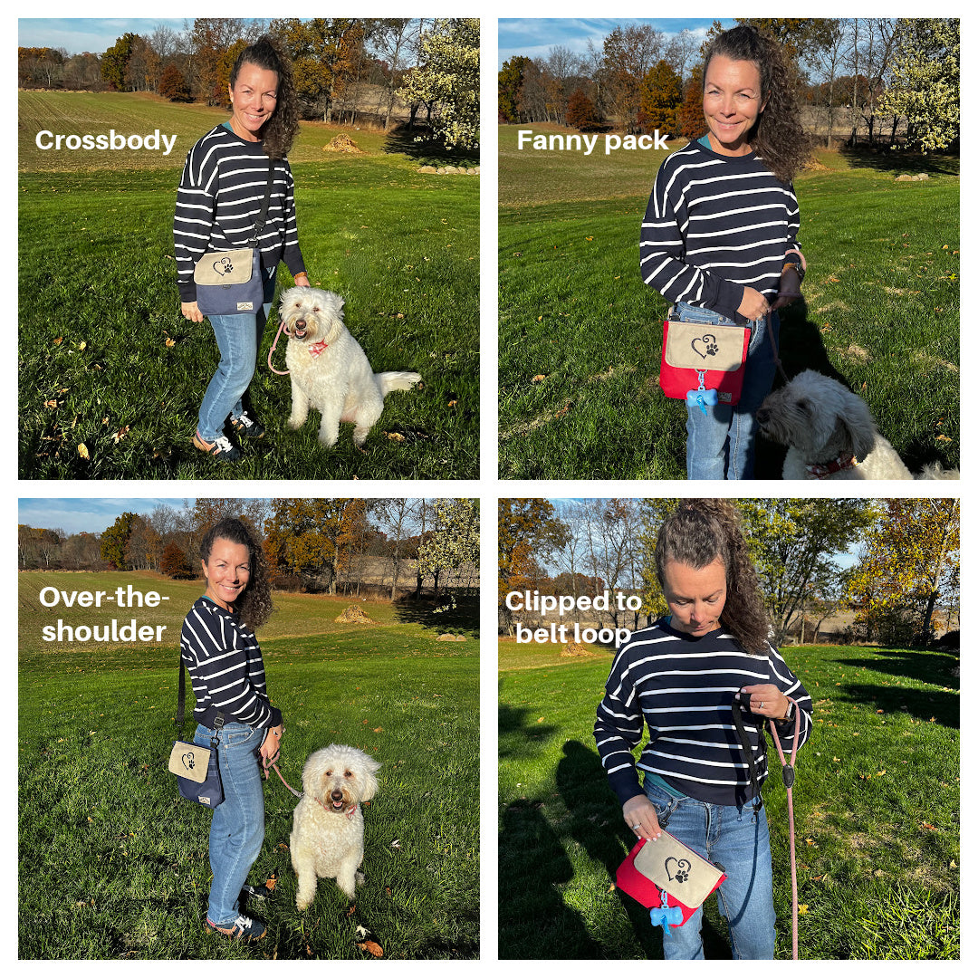 "I LOVE my WoofPack! It allows me to carry everything I need for walks with my pet. No worries about how to carry waste filled bags with the convenient middle compartment. It's super comfy to carry with a strap that's long enough to wear crossbody. They thought of everything!"